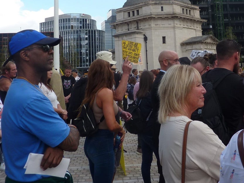 The above ten paragraphs were intended to be a preamble, to place context on what has happened over the past nineteen forty-three months and counting. For myself, I only became aware of any organised opposition to lockdowns, other restrictions and what may have come to follow, in August last year 2020. It was the mandate the previous month for mask wearing that made it obvious that normality would not return any time in the foreseeable future as indeed it hasn't. I attended a Freedom Rally in Victoria Square, Birmingham, for which a short summary can be found here on a different blog that I have written. Conspicuous by their absence, as they have been ever since, were the political left.
